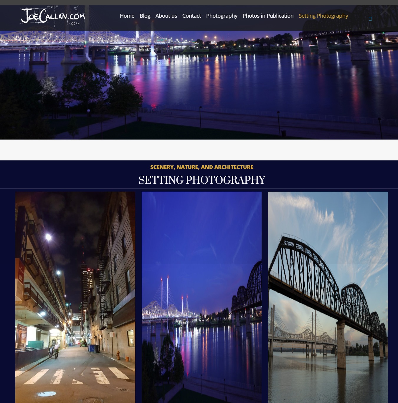 The new build keeps the structure database-driven, but the presentation is being brought back toward the original Joe Callan site language: dark skyline imagery, strong typography, editorial spacing, and a mix of production, writing, and image work.